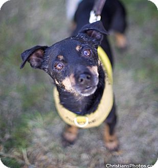 He was found thrown out in a tightly taped up box at a gas station. If that wasn’t bad enough, he then sat at the shelter for a month waiting for someone to save him and no one came. It was in the 11th hour that our rescue saw his story and said there is no way that poor dog is going through being saved from that and then being killed in the shelter.He is SOOOOO sweet! We can’t understand where he came from because he is the best little dog. His foster mom wrote this…”Someone please give this little guy a good home! He is so special in every way. What a fun little personality! Best Foster dog we have ever had! He gets along great with our four year old little girl and our elderly chihuahua. Shopped for an hour in a dog bag and didn’t make a peep! We will provide his food for one year to the person who adopts him.”He is approx 6-8 years young and loves riding in the car and going for walks and hikes. He knows sit and stay and does fine around other dogs. He can be anywhere from 6-8 years old and has lots of fun energy to him. He has been in three short term foster homes and adapts to new environments very well. Our WISH is for Tebow to be in a stable permanent home. A home without small children.